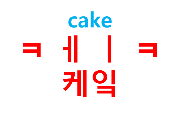 Cake를 발음기호를 사용하여 나타내면 [keit]입니다. 발음 기호를 한글 발음으로 표현하면 [ㅋ ㅔ ㅣ ㅋ]입니다. 알파벳 방식으로 발음과 소리를 표현하였습니다. 이 소리를 훈민정음 방식으로 표현하면 받침에 키읔이 표현됩니다. 훈민정음 방식의 표기는 소리 단위(분절음)로 표현합니다. 훈민정음 방식의 소리 단위는 모음을 하나의 소리 구성단위로 보는 것입니다. 모음 하나에 하나의 글자를 표현합니다.